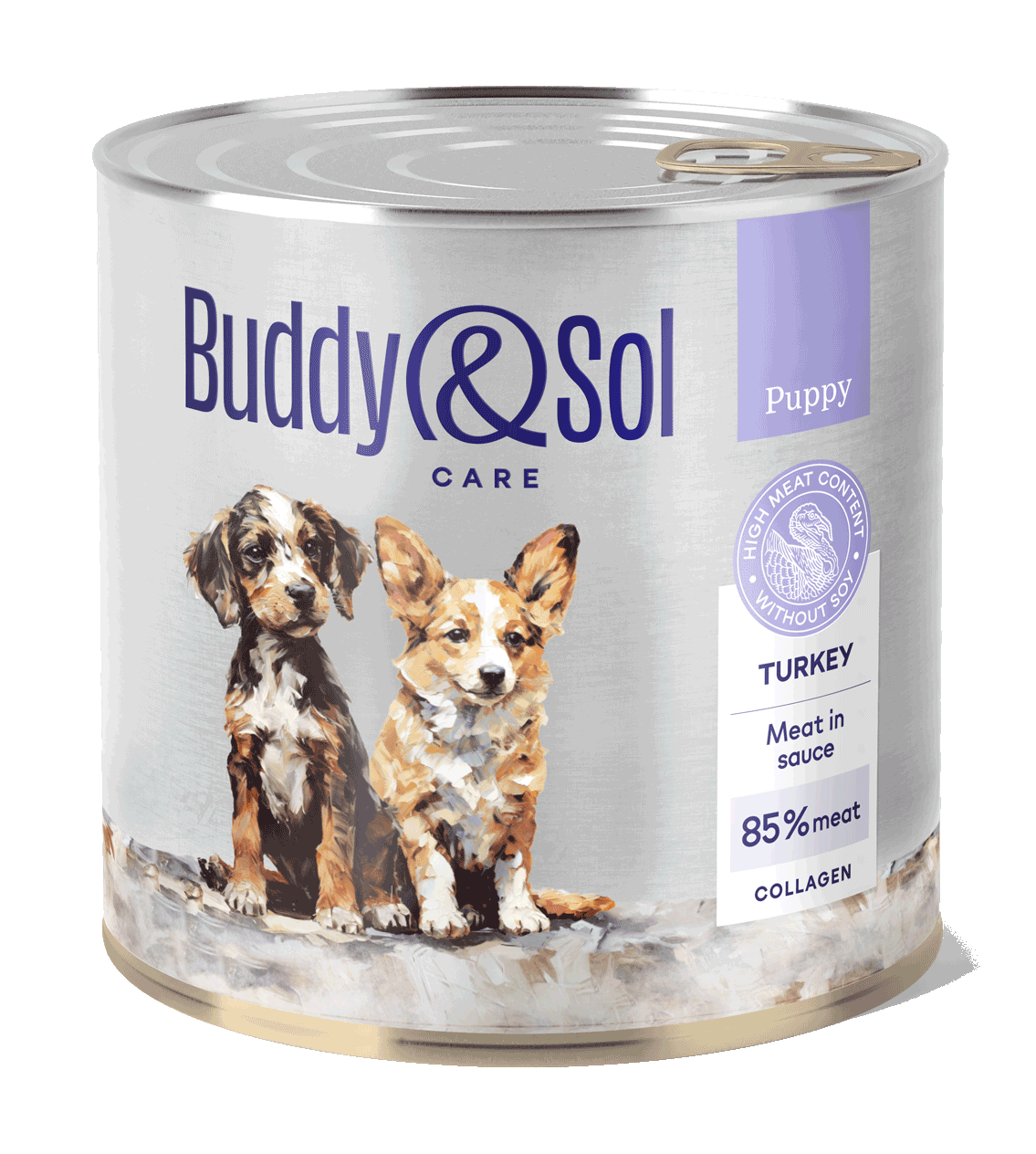 Полнорационный влажный корм для щенков, мясные кусочки с индейкой в соусе